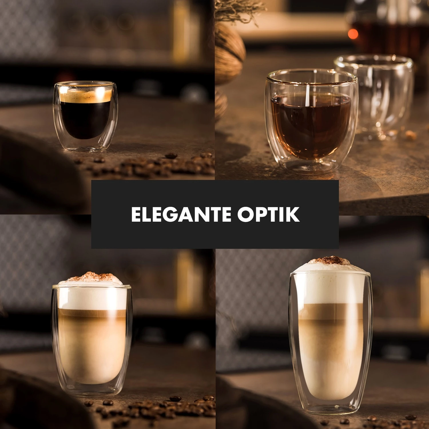 Verwöhne deine Gäste: Serviere ihnen einen heißen Espresso oder Latte Macchiato, einen leckeren Cocktail oder einen eiskalten Shot. Mit den doppelwandigen Glaswerk Mirano Gläsern von Klarstein wird einfach jedes Getränk ein besonderer Genuss.