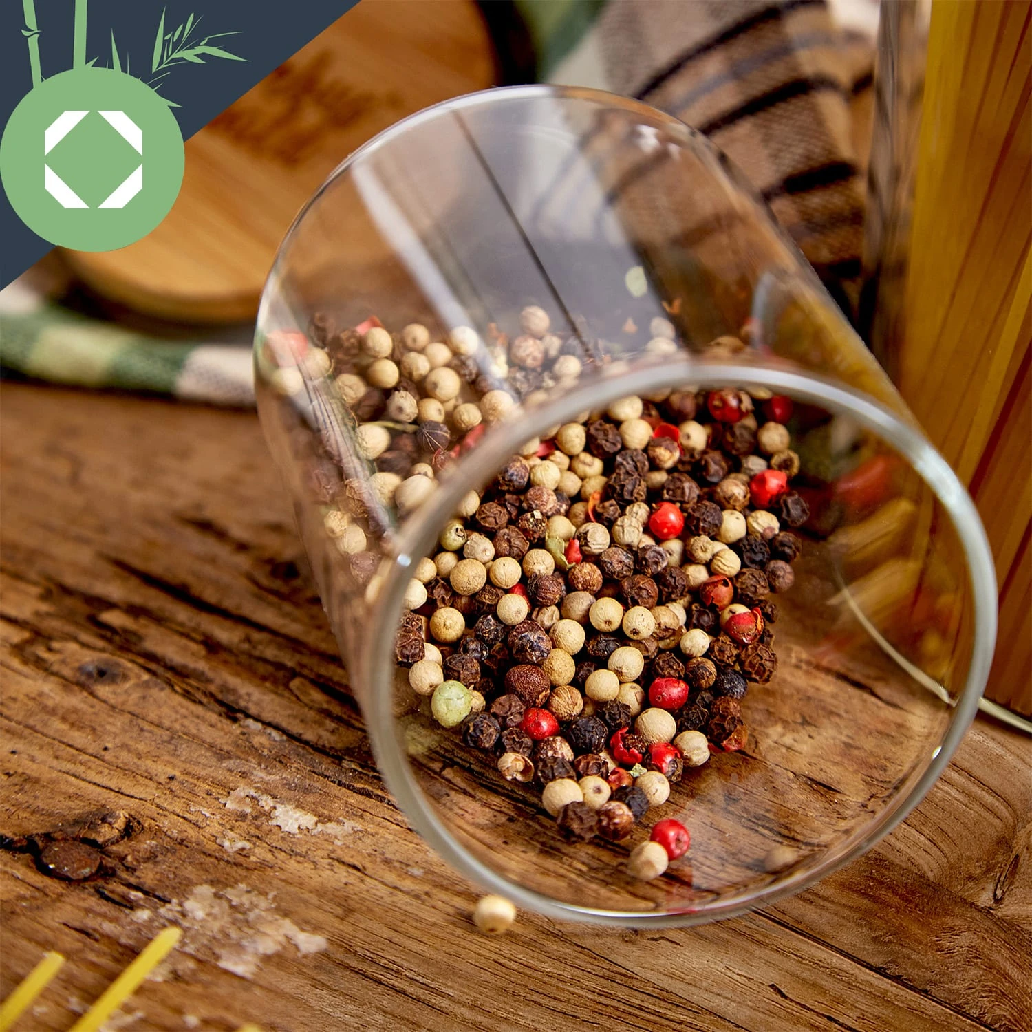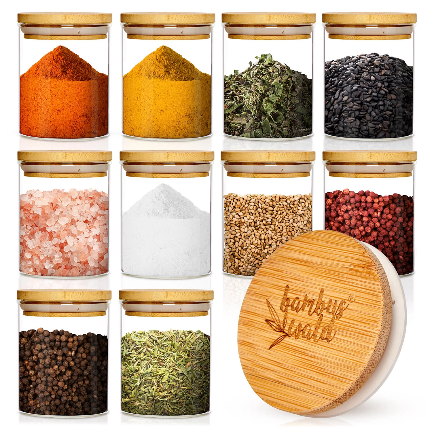 Gewürze sind etwas Wunderbares: sie verzaubern nicht nur alle Speisen, sondern bringen meist exotische Farben mit sich. Fülle sie in ein rundes Glas von Klarstein, nutze ihre Optik als einzigartige Dekoration und erlebe maximalen Komfort beim Würzen. Dank der Deckel aus reinem Bambus mit Silikonring kannst du die Gläser fest und luftdicht verschließen, das erhält das Aroma der Gewürze langfristig. Natürlich kannst du auch Tees, Backwaren oder Süßigkeiten mit den Gläsern schön in Szene setzen.